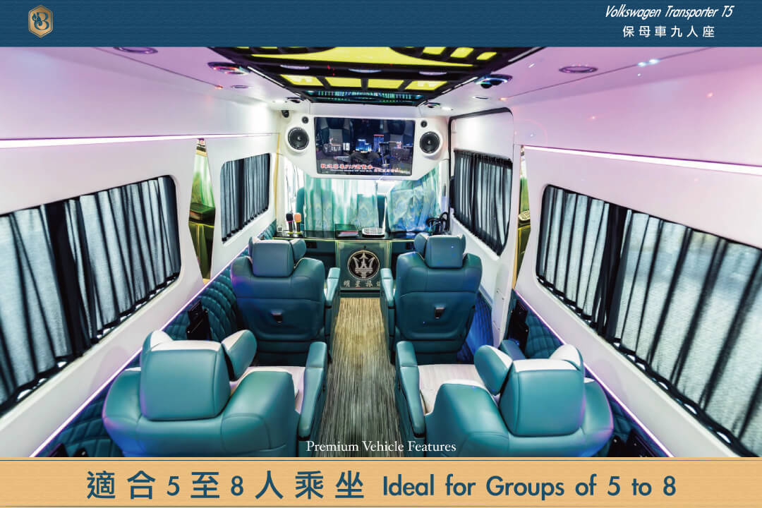 提供商務轎車、七人座、九人座與保母車等多種選擇, 依照不同人數與出行情境配置最適車款,兼顧乘坐空間、舒適度與整體接待規格。